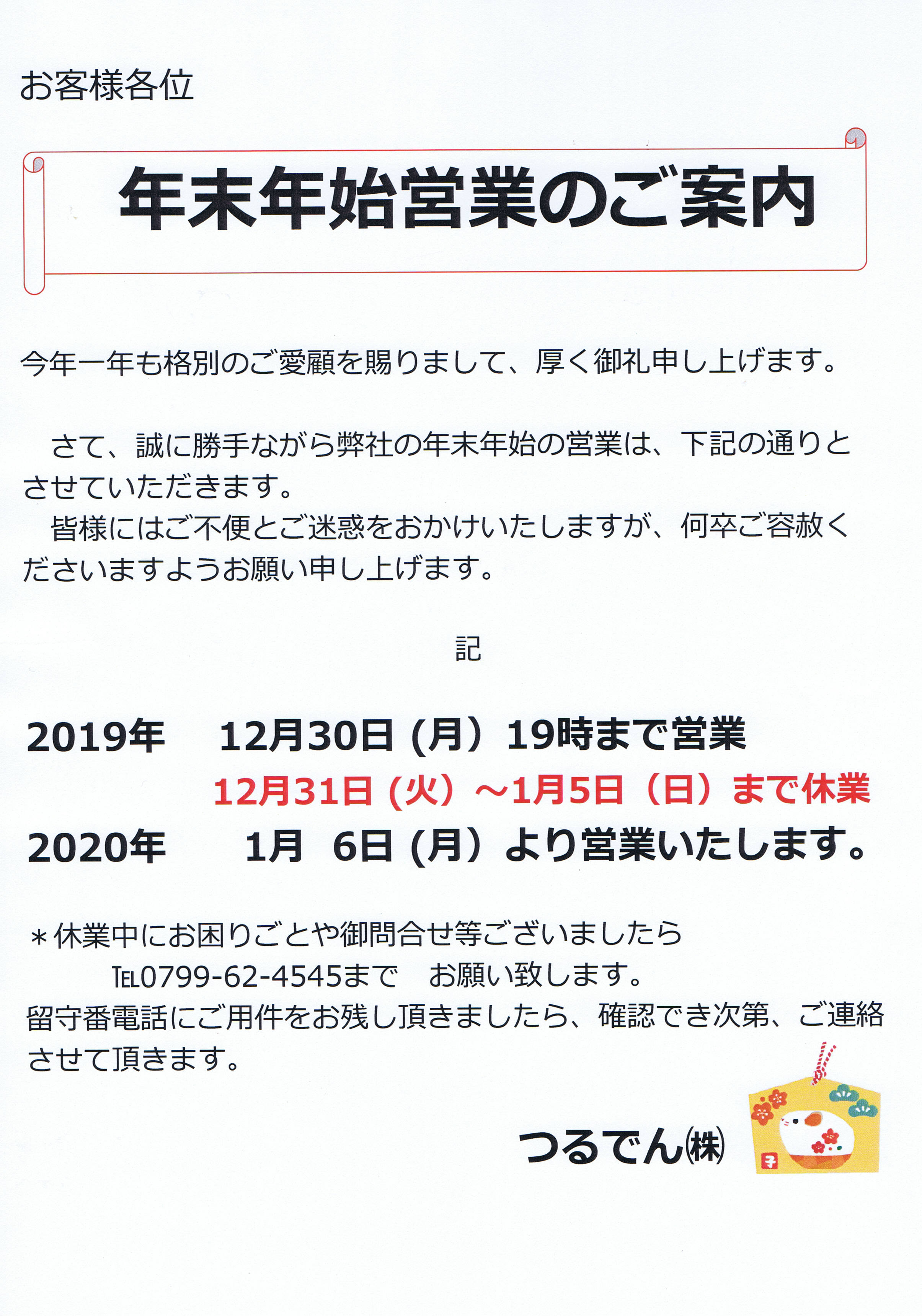 旧年中は大変お世話になりました。
