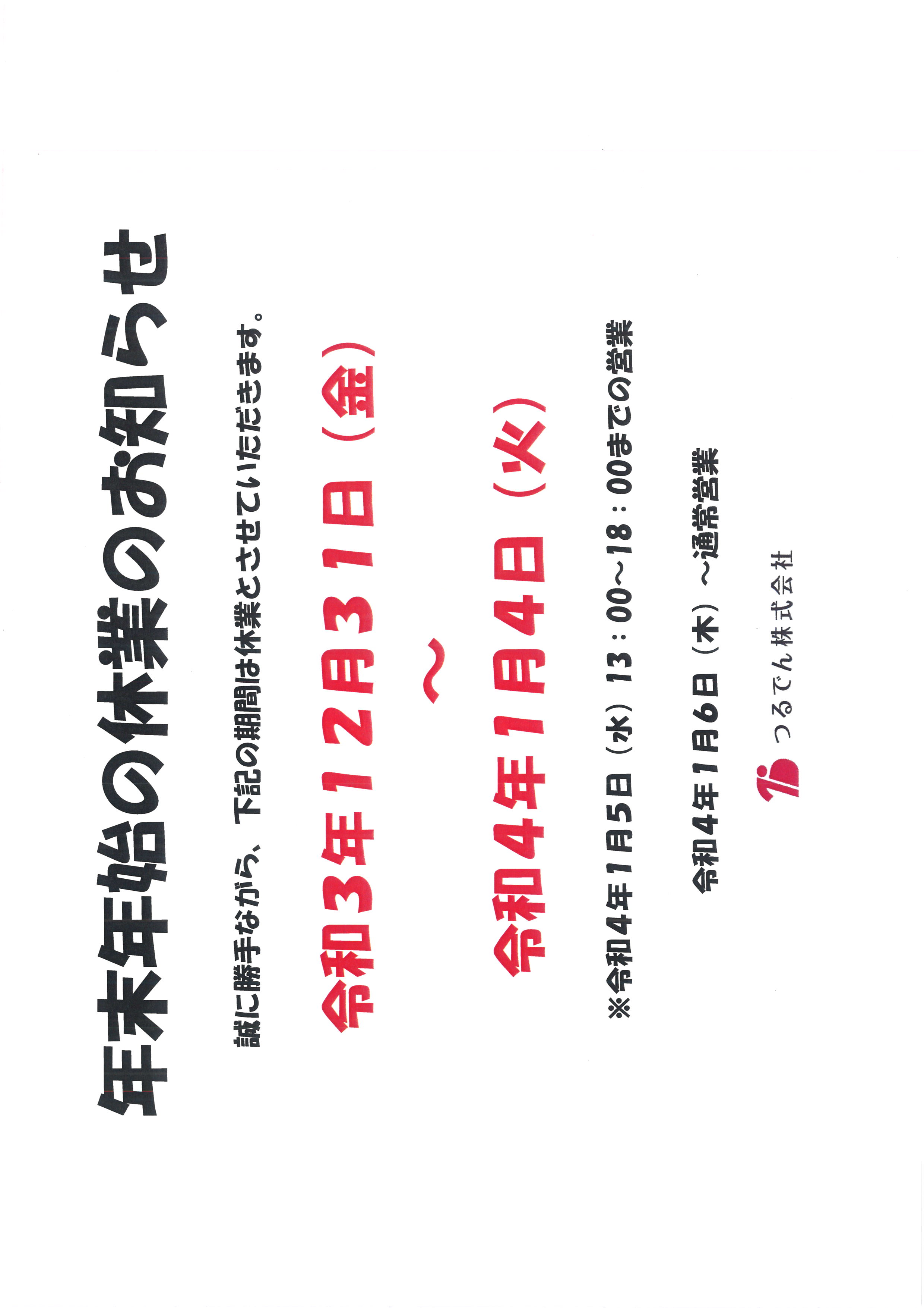 今後、新年のご挨拶・ご案内はSNSやHP等などで